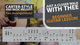 I’ve created two arrangements for the popular gospel tune “Just a Closer Walk With Thee” in the key of G. The first arrangement is done mostly in the Carter Style and it involves a basic melody that lies in the lower register. The second time through we’ll go up on the neck to explore some different chords shapes all while playing a straight-ahead melody with a few embellishments. This is a beautiful tune and one every gospel lover will recognize. Enjoy!